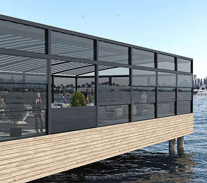 Guillotine system in the product Zahit Aluminium, offers wider, spacious, and bright living space options that can be enjoyed for four seasons. Providing sound and thermal insulation, the new generation guillotine glass system is widely preferred in places such as terraces, cafeterias, restaurants, patios, and winter gardens. Guillotine system is a must for living spaces with the possibility of single-glazing or double-glazing combination, motorized or chain system alternatives, remote control, and anodized & RAL color options. Produced with the superior technology of Zahit Aluminium, the guillotine system make life easier with various “patented” innovations and a “safety system” that prevents hand and finger entrapment.